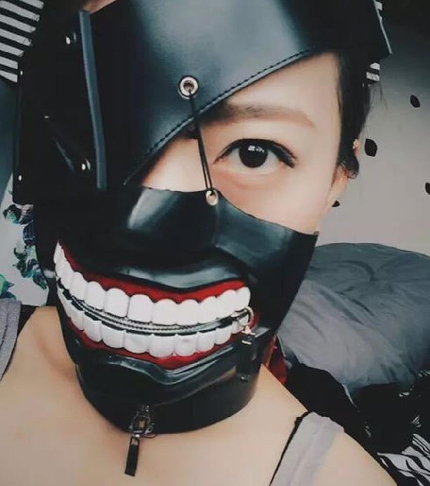 New party cosplay mascaras de anime adjustable halloween masks pu leather japanese blinder kaneki ke.